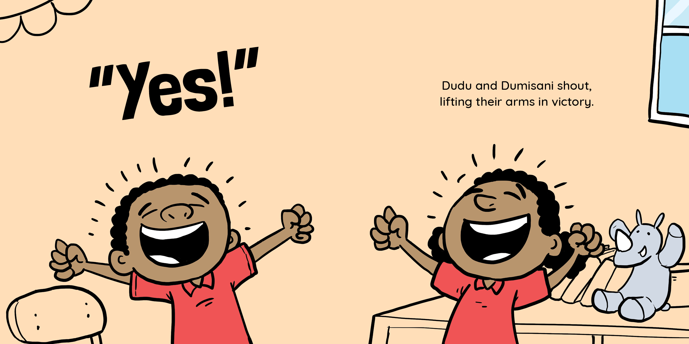 Hats off! Dudu and Dumisani have made up a new game. Ssh! Don’t tell Teacher.